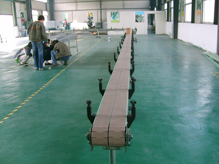 鏈板輸送機在進行安裝時也需要注意以下相關(guān)事項,由于鏈板輸送機的制動裝置反應(yīng)靈敏可靠,其限位夾緊裝置也應(yīng)該能夠獨立受工作狀態(tài)下最大風(fēng)力而不致被風(fēng)吹動。鏈板輸送機的機架安裝首先是從頭架開始的、然后順次安裝各節(jié)中間架,最后裝設(shè)尾架。根據(jù)相關(guān)的規(guī)定和原則,我們的生產(chǎn)的鏈板生產(chǎn)線都是采用標(biāo)準(zhǔn)頂板鏈為承載面,由電機減速機為動力傳動,支承在專用導(dǎo)軌當(dāng)中。頂板鏈也可以進行選碳鋼、不銹鋼或是熱塑鋼鏈,選用不同形狀的平板形式,以完成平面輸送,平面轉(zhuǎn)彎、提升下降等各種功能。