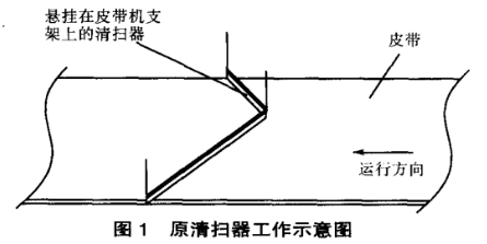 由于皮帶在運轉(zhuǎn)當中會發(fā)生上下抖動,而清掃器又是與皮帶接觸的,所以清掃器也隨著皮帶上下抖動,這就導(dǎo)致該清掃器與皮帶架的連接容易脫落。脫落后的清掃器在皮帶上滑動,其頭部的尖端就可能會劃傷皮帶,嚴重時導(dǎo)致皮帶撕裂。基于這兩點因素,該清掃器在日常的使用和維護當中,需要經(jīng)常人為地去檢查、調(diào)整及更換,既浪費人力、材料成本,又存在安全隱患影響正常生產(chǎn)。因此對這種清掃器的改進是勢在必行的。